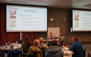 Jackson Hole valley. Each recipient received a small monetary award and a printed plaque. Pre-symposium workshop: A professional development workshop on October 25th at the Teton County Library preceded the symposium. Over 50 local and regional leaders, officials, and citizens attended, engaging in discussions on more effective and strategic efforts for conservation and wildlife coexistence. Participants were provided with a comprehensive workbook containing articles and worksheets, along with refreshments during the afternoon session.